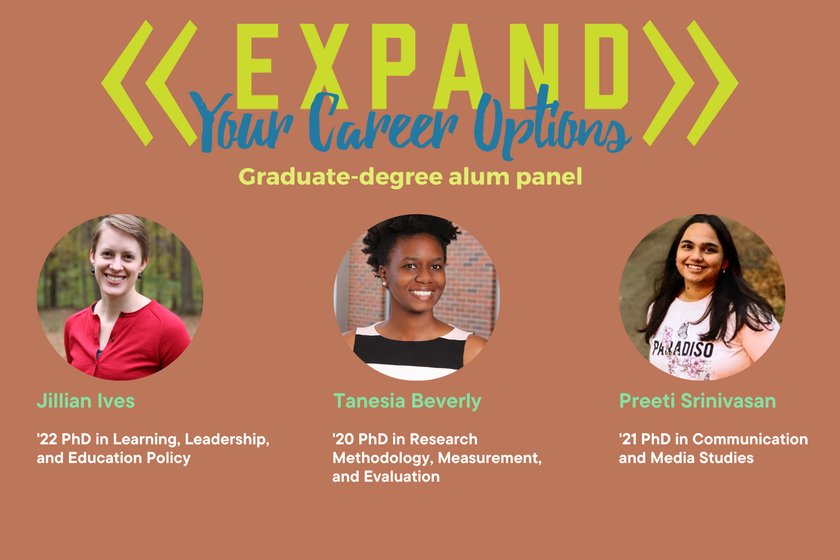 Specifically designed for graduate students, Expand Your Career Options occurs every semester and features UConn graduate program alums who pursue a range of careers.