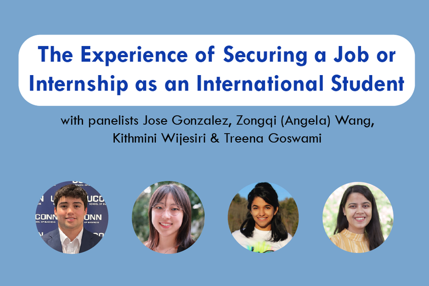 The Center for Career Development hosted a panel titled “Navigating the U.S. Job and Internship Search” for international students. The panelists, all UConn students or alumni, shared their career journeys, challenges, and successes they encountered along the way.