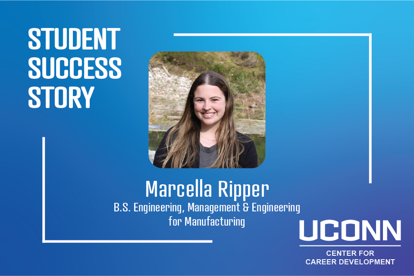 Marcella then thought about how she ended up majoring in Biomedical Engineering at the UConn College of Engineering. She had spent considerable time during her junior and senior years in high school, critically thinking about the potential areas of study that would allow her to combine her strong proficiency in math with her interests in engineering and healthcare. During that same period, Marcella had engaged in various student club activities that, without her realizing it at the time, had helped her enhance several of her Career Readiness Competencies including teamwork, communication, the use of technology, and leadership.